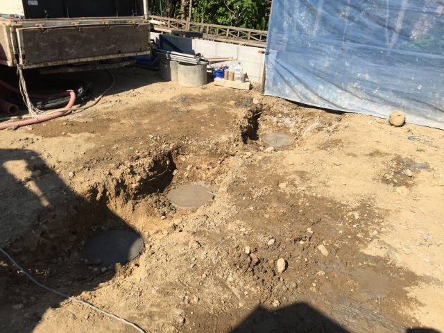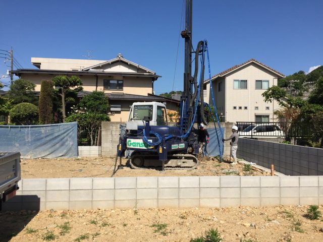簡単に言うとドリルで穴をあけた空間にセメントを流し込み、杭状に固まらせて硬い地層まで届かせる工法です。