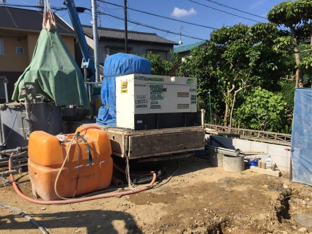 今週は杭工事です、セミパイルを打設します。
