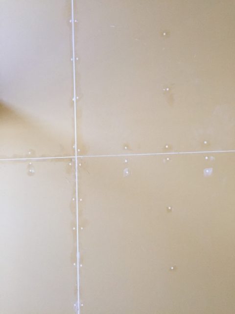 これは壁の様子ですがビスの頭を下地処理しています、こうすることにより経年によるビスの錆びを防止します。