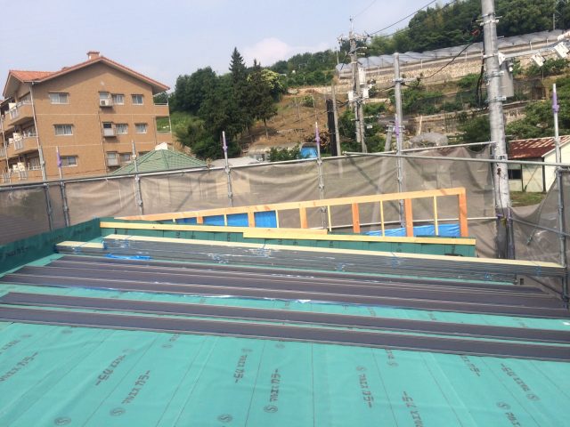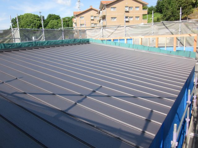 外部の方は昨日屋根葺きが行われました、昨日も炎天下の中での作業で1日屋根の上で作業する板金屋さんは大変だなと思いました