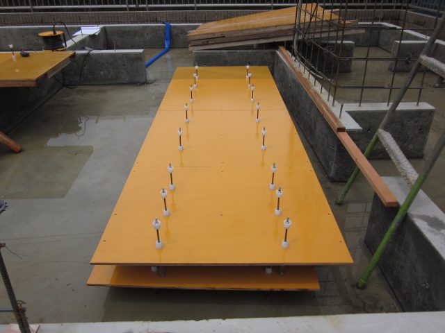 さぁ電気屋さんの仕込みも終わっていよいよ型枠の建て込みです、事前の打ち合わせで決めたセパ割の通り加工しております。