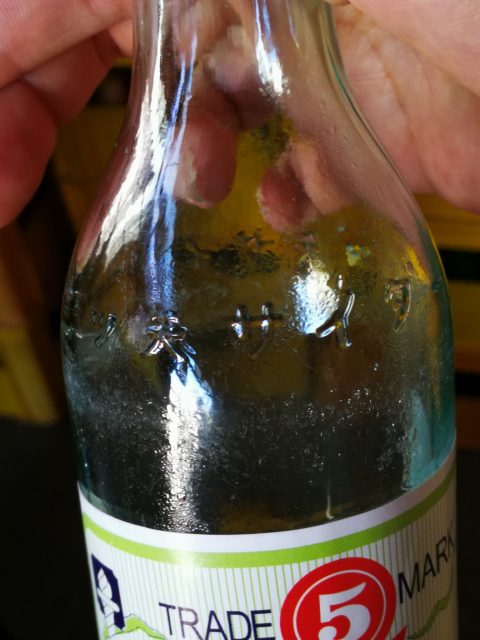 ▼今は作られてない三ツ矢サイダーの瓶を再利用しているので、持ち帰りは×です。