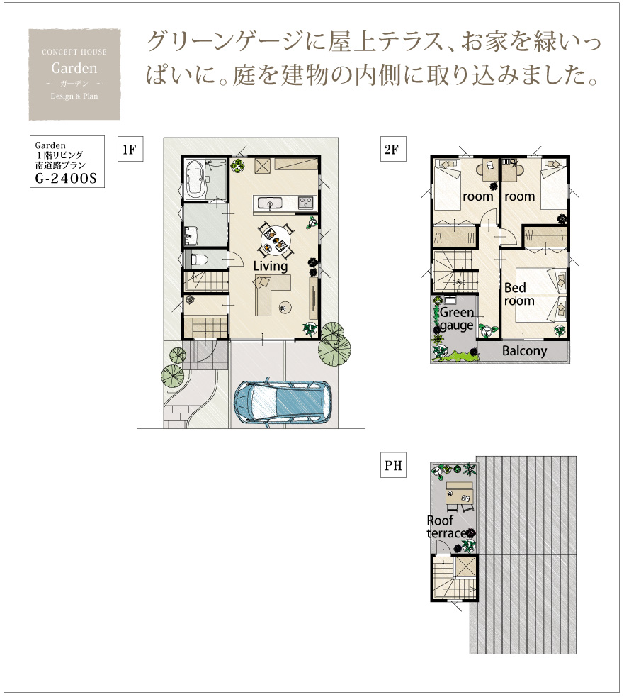 今回ご紹介する間取りプランは、建物の内側に庭を取り込んだ家 Garden~ガーデン~