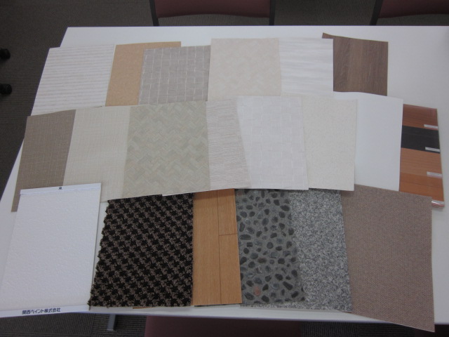 今回、これだけの種類のビニールクロス・絨毯・長尺シート・フローリングなどを使います。
