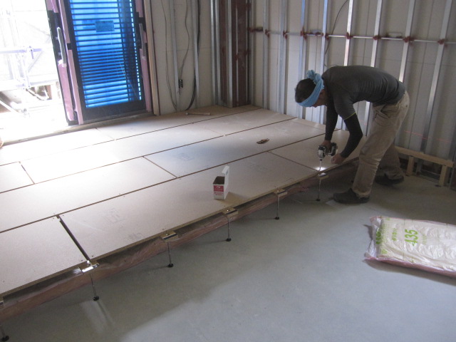 礼拝所以外の部屋は床が土間から上がるのでその床の下地を大工さんが組んでいきます。