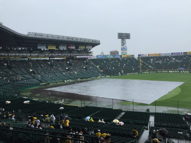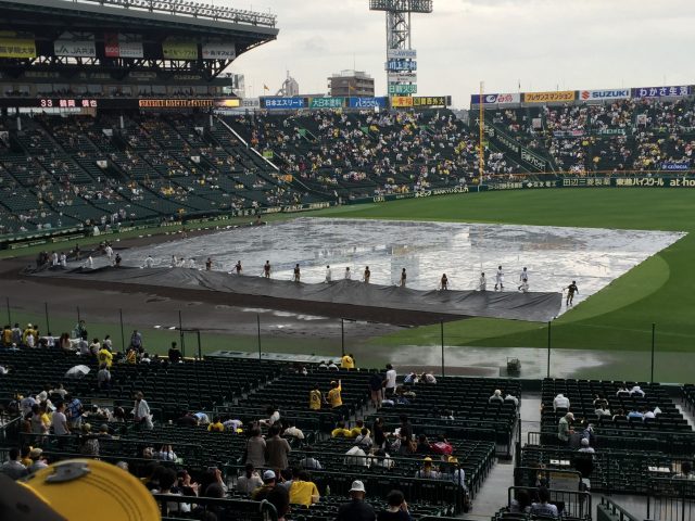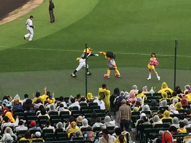 雨で中止かと言われながらも、阪神園芸の方がシート貼ったり、砂入れたりしてくれたおかげで10分遅れでプレイボール