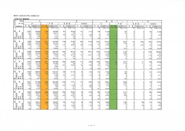 これは国土交通省が発表している平成27年度の新設住宅の戸数と床面積の統計数値です。