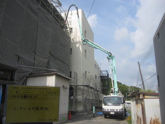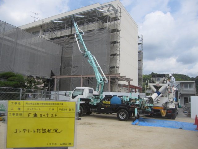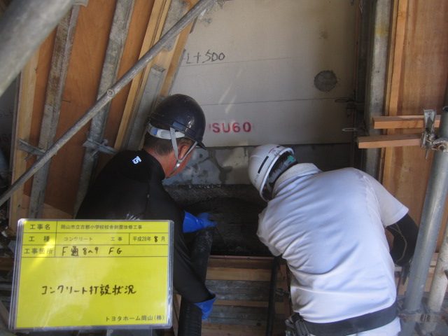岡山市古都小学校ピタコラム工事 コンクリート打設!