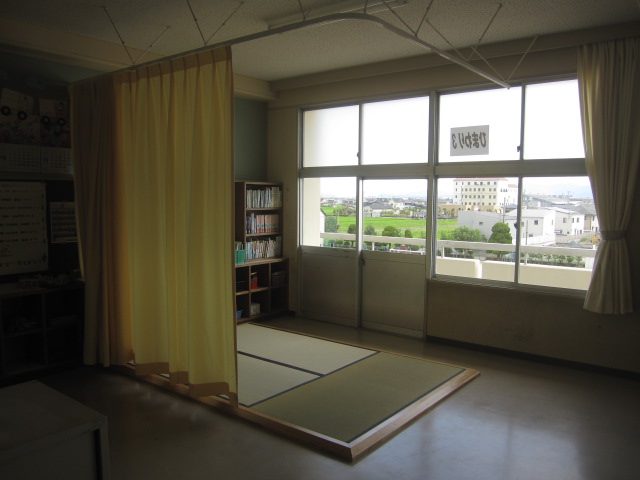今回の修繕内容は教室内にアコーディオンカーテンの新設・畳スペースとその周りにカーテンの新設が主な内容でした。
