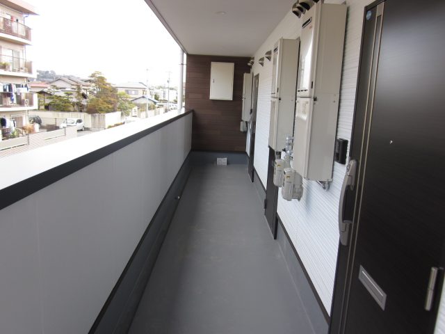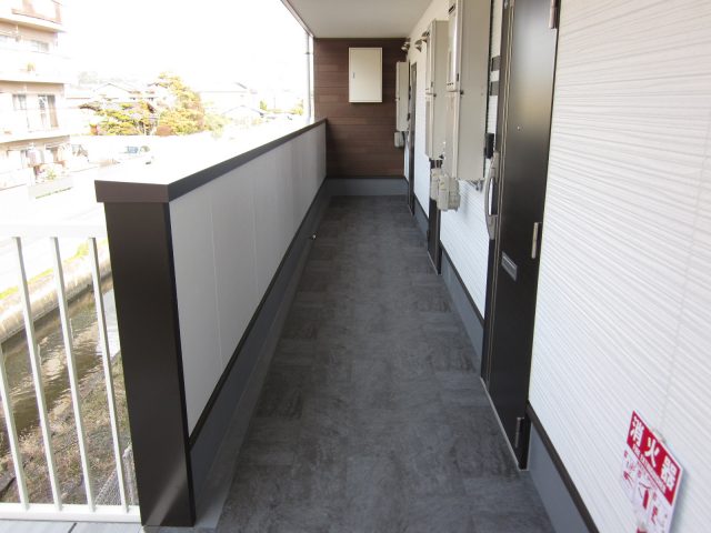 それと2階の共用廊下にノンスキッドという防滑性のビニルシートを貼りました!