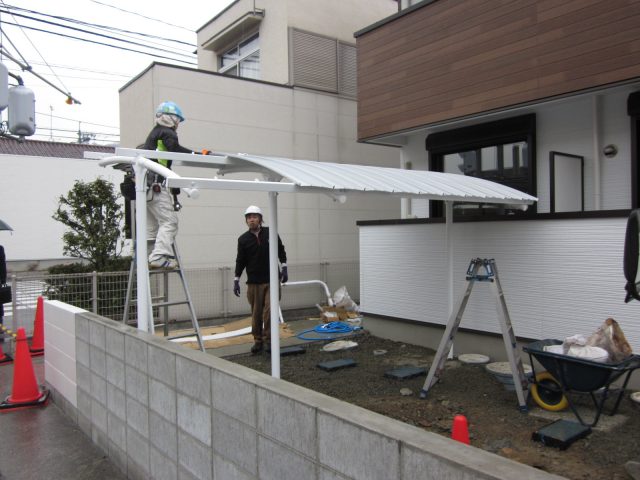 こちらのサイクルポートもユニット商品なので職人さん手際よくどんどん組み立てていきます!