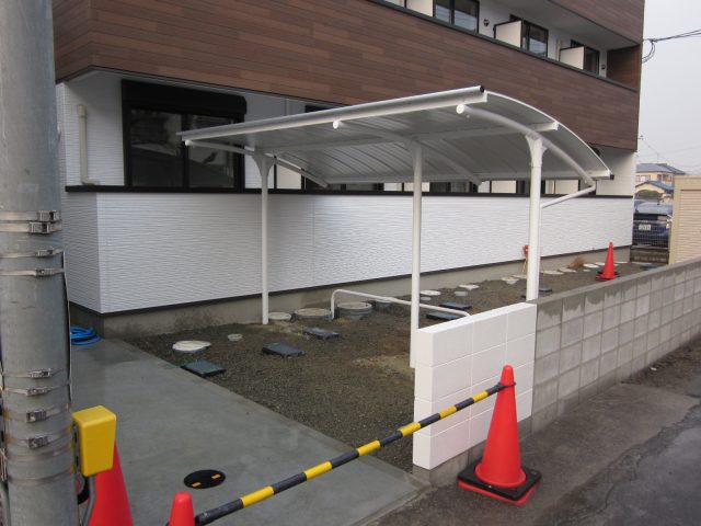 岡山の新築木造アパート「アーバンテラス津島福居」 駐輪場の設置を行いました!