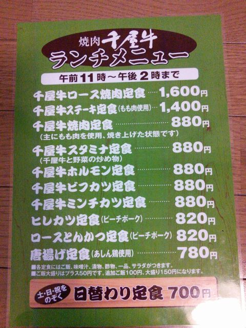 「焼肉レストラン千屋牛」へ行ってみました。 → HPはコチラ ←
