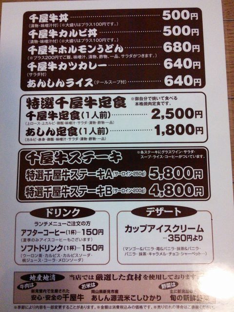 「焼肉レストラン千屋牛」@岡山県新見市正田でお食事&ショッピング