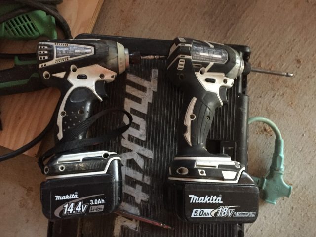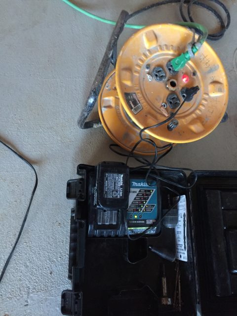 インパクトドリルの充電池を充電している様子です、個の充電池が高いですね1万5千円位します。