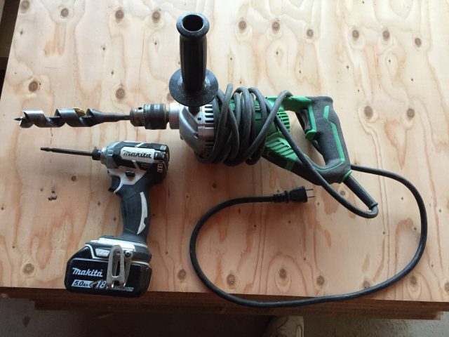 有線のドリルもあります、これが一番力が強く大きいですが、有線の為電源を引っ張るのが少し面倒ですね。