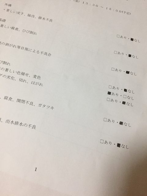 先ずは外部、外構と外壁、屋根などを検査しました、奥様にお伺いしながらグルっと2周しましたが、大きな不具合は無くホッとしました。