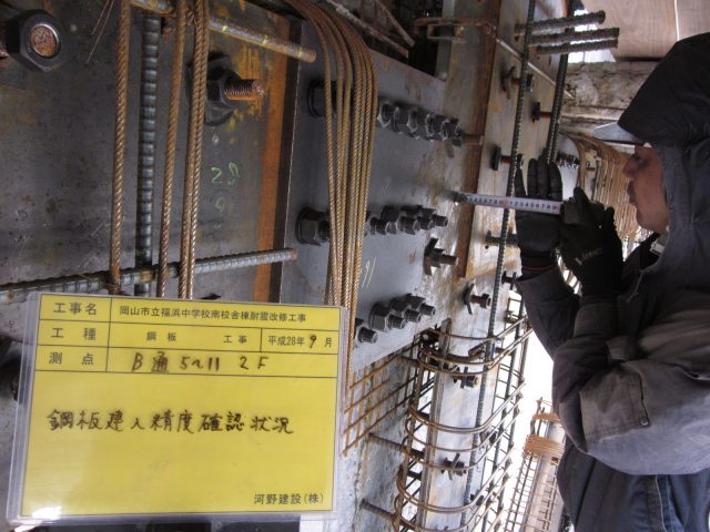 岡山市立福浜中学校ピタコラム工事 鋼板建方完了!