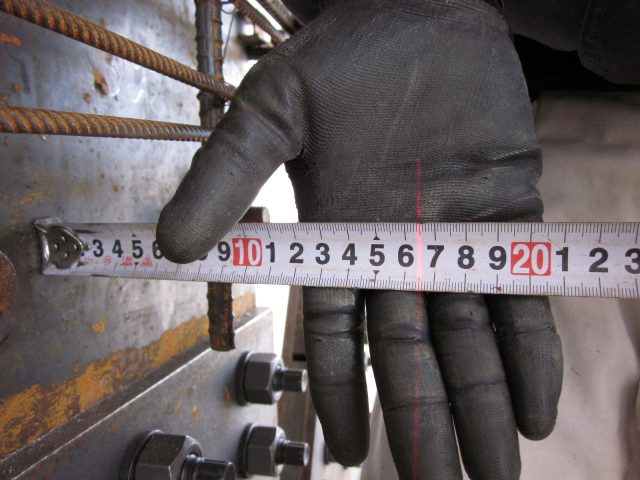 先週に引き続き福浜中学校ピタコラム工事ですが鋼板建方が完了し今日から割裂防止筋の仕舞に入っています。