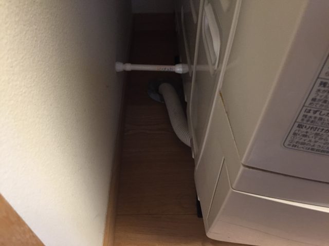 あと、お願いしたいことはなんですか?と聞いたところ、ドラム洗濯機を使っていると振動で勝手に動き出し、ホースを潰してしまうらしい、本来は僕のお仕事ではないのかもしれませんが、お困りのようなので一肌脱ぐことに。