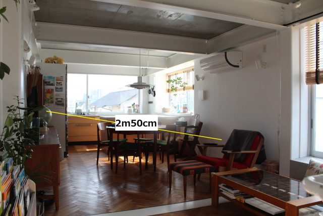 我が家はテレビからいつも見ているとこに座ると2m50cm。