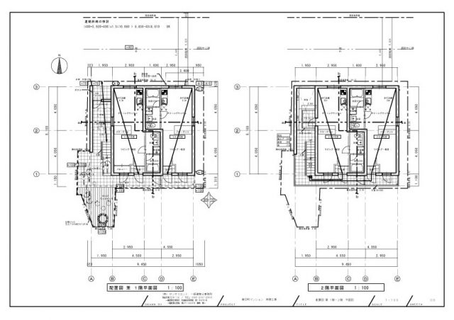 規模の大きな建物だと平面だけでも一枚に入りきらないので、何枚にも分けて描くようになります。