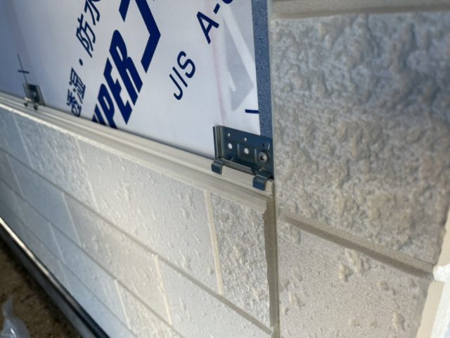 ▼外壁がサイディングの個所は、透湿・防湿シートの上に金具をつけ、サイディングを取り付けます。