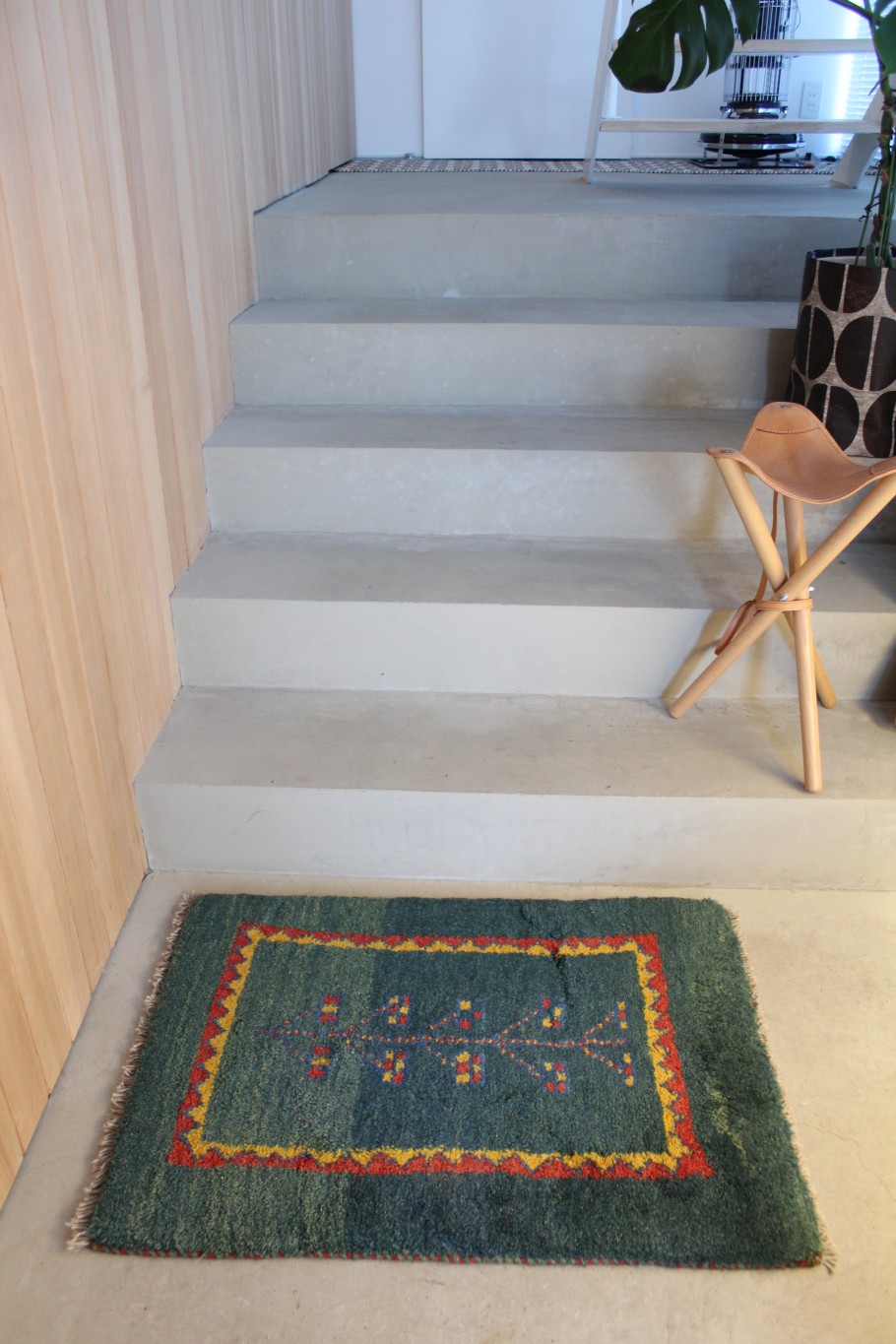 玄関マットに使うと、帰ってきて靴を脱いで、ギャッベに第一歩。ホッとできます。