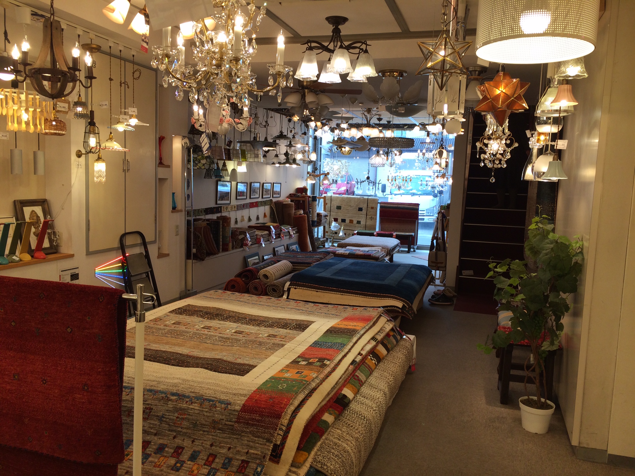 しかしそれだけでなく、カーテンや絨毯なども取り扱っており、特に高級絨毯ギャッベを多く展示しています。