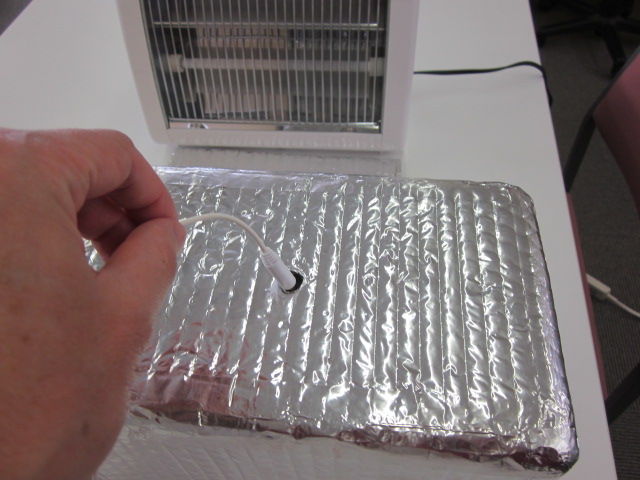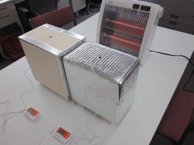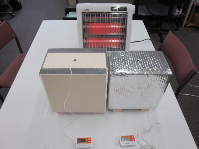 この両方の箱は電気ストーブから離れているので、熱伝導もおこりません。