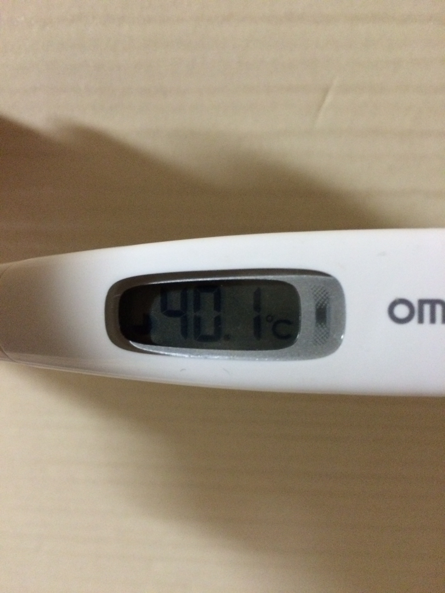 半日くらいの時間差でどんどん発熱していったのですが、発症2日目には自分と子供二人は40度の大台を超えまして、まあしんどかったです・・・