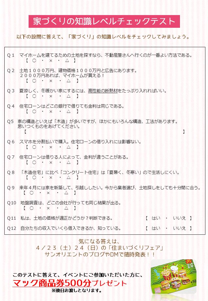 先日、▼こういう「家づくりの知識レベルチェックテスト」 というお手紙をお送りしました。