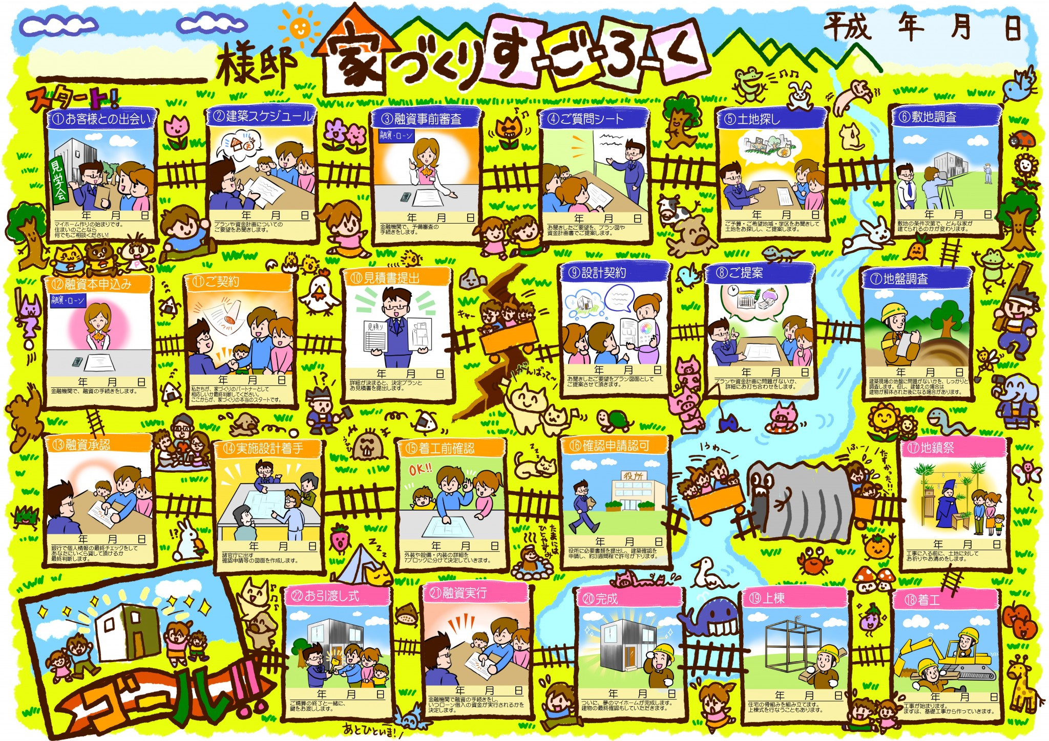 「住まいづくりフェア」では、この▼「家づくりすごろく」を使って、実際にお客さまそれぞれのスケジュール表を作ってみます。