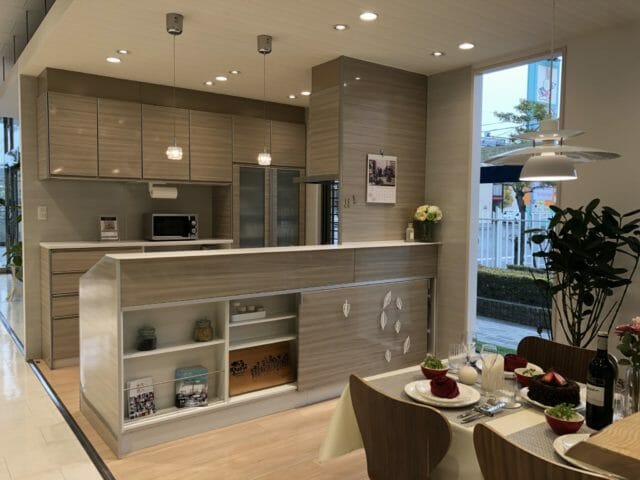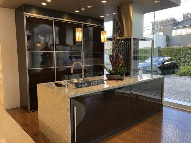 こういうキッチンも素敵よねえ♪と奥様。でも、一日3食作られるご家庭ではショールームのようにいつも片づいている状態はキープできません。ゴチャゴチャしているのがリビングから丸見えは落ち着きませんよね。