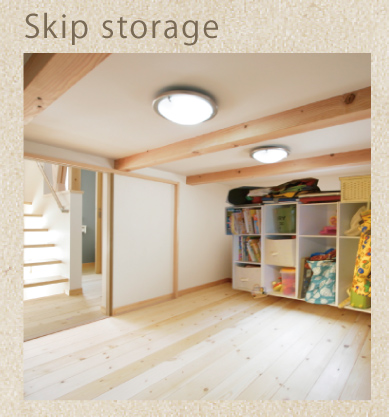 スキップ収納には子供の玩具や季節の物を。また趣味の部屋として利用できます。