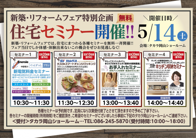 タカラ岡山ショールームで 「住宅セミナー」 ありますよ♪