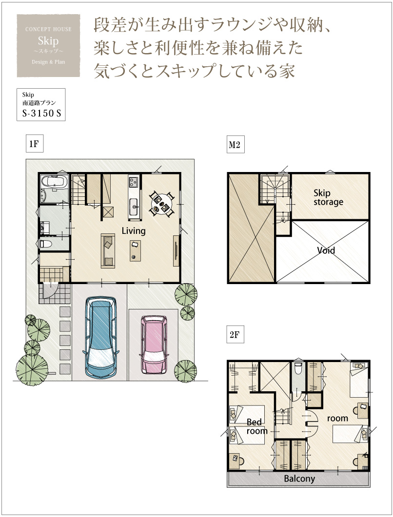 今回ご紹介する間取りプランは、中2階のある家 Skip ~スキップ~