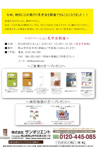 5月21日(土)22日(日) 岡山市中区にて『リノベーション見学会』 開催です。
