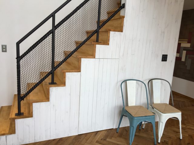 こちらのおうちは子供さんがまだ小さいので階段や吹き抜けの手すりにネットを張っています。
