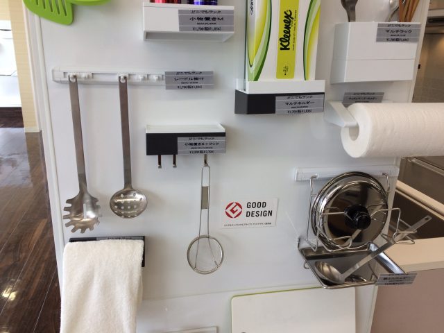 タカラさんのショールームでは、このような磁石で壁にくっつけられる便利グッズが展示してあります。