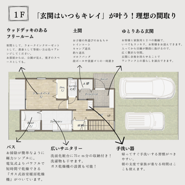 広くはありませんがウッドデッキのあるフリースペースがあることで、ここでも生活のゆとりが生まれます。