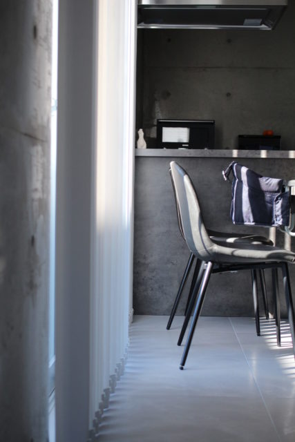 お子様がいらっしゃると「子供のために、子供に喜んでほしい」という思いで家づくりが進むことが当然多いのですが、このお家はどちらかというとご夫婦二人の思いと感性を目いっぱい表現した家。なので、コンクリートの角が危ないなとか、裸足だと足が冷たいんじゃないか、とか思ったりもします。でも、この家で生まれ育つお子様は、この家がスタンダード。角は危ないから気を付けるとか、自然に身に着けると思います。子供の順応性や可能性は素晴らしいですから。ご両親のすてきな感性と想いに囲まれて成長できるって最高のプレゼントだと思いました。