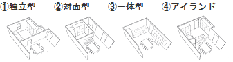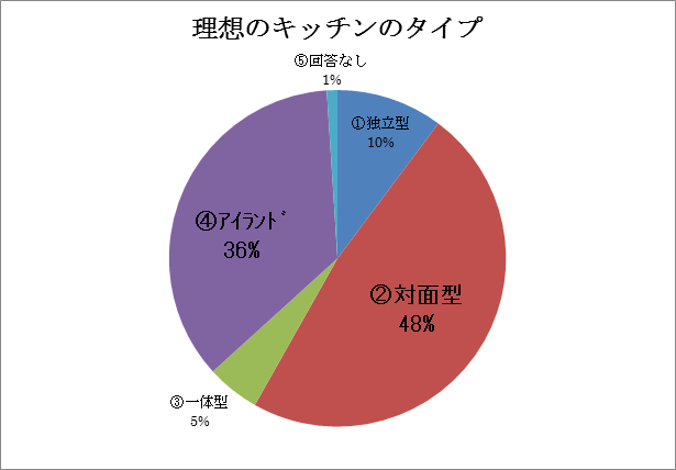 ②対面式と④アイランドは最近区別がなくなってきてますので、一緒にしてみると、圧倒的に人気ですね!最近のおうちはたいてい、対面かアイランド♪