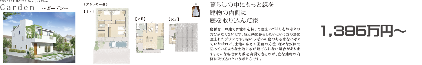 具体的にご記入いただいて、多かったのが、「狭くてもいいから庭がほしい!」「緑に囲まれて生活したい」 というご希望です。利便性よく立地よい土地に家を建てるとなると、なかなか緑豊な土地とはいかない場合も多いものです。また、ひろーい庭があるのはいいですが、お手入れが大変です!そんな方にはこちらがオススメ↓