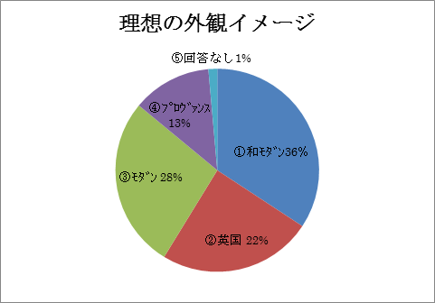 この結果、社内で「へえ!」でした。よく見かける『プロヴァンススタイル』よりも『英国スタイル』が人気!サンオリエントでは今は規格プランの『英国スタイル』はありませんが、自由設計ですので、対応できますよ!