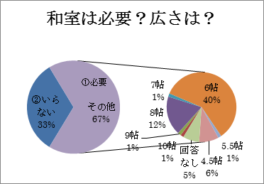 一般的には和室離れが進んでいるということですが、まだまだ7割近い方は、和室があった方がいいと思われてます。サンオリエントのコンセプトハウスでは、坪数が限られていても、タタミコーナーを設けたプランがこれです。