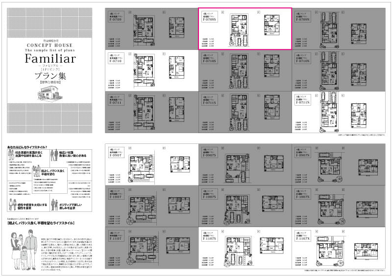 今回ご紹介する間取りは規格住宅(コンセプトハウス)のひとつ、家族との暮らしを楽しむために生まれた家 Familiar ~ファミリアル~ の中の約28坪・3LDK+和室・南側に道路がある場合に参考にしていただきやすいの間取りプランです!