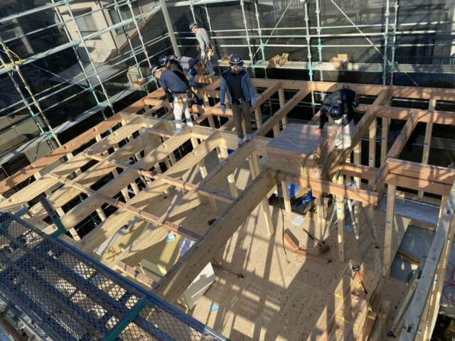 ▼だいたい、15時くらいには2階まで完成し、家の形に