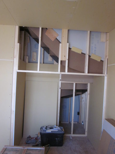 ちなみにこの階段下スペースはそのまま塞いではもったいないので部分的に収納スペースとして活用します。
