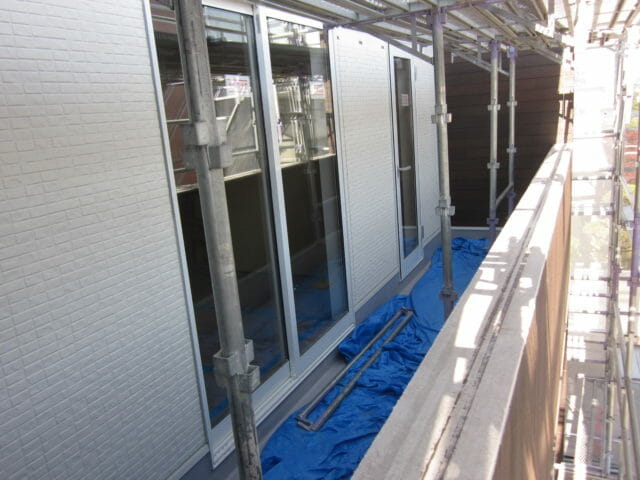 現在建物の3面が張り終わって残り1面が半分ぐらい残っているような状況です。